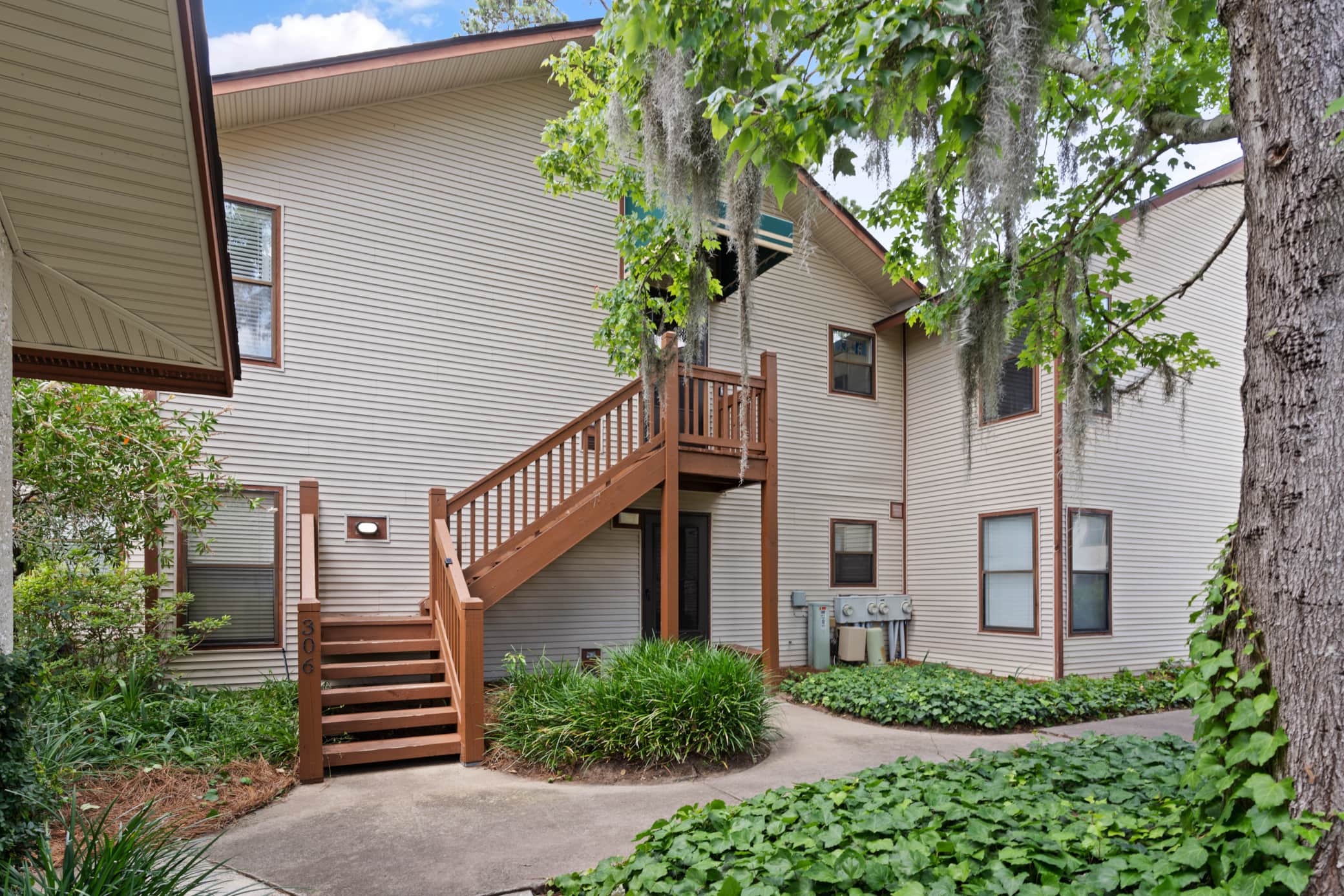 When you are coming on Saint Simons Island, take the southern most entrance--Kings Way. Follow Kings Way to the intersection with Mallery Street, then take a left. Harbour Oaks is on your right, just passed South Palm Villas (after the pickleball and tennis courts on your right). After you pass the gate, take a right and follow the loop around till you see 306 on the left under the covered parking. 306 is the second building back on the left from there, on the second floor.
